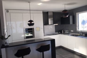 AMBILLY - Emplacement idéal, situé à deux pas des douanes de Pierre à Bochet et Mon Idée, au premier étage d'un immeuble fraîchement sorti de terre et de bon standing, appartement T4 de 93,52 m2 composé d'une entrée menant au salon/séjour avec accès à une spacieuse terrasse de 33,57m2 en double exposition Sud et Est, une cuisine équipée ouverte, trois chambres dont une suite parentale avec une salle de douche et w.c, une salle de bains et WC séparé.
