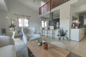 Cet appartement est composé au rez-de-chaussée d'une entrée avec placards desservant un salon/séjour cathédrale avec son balcon terrasse attenant exposé Ouest, une cuisine équipée ouverte avec balcon Est, une suite parentale avec dressing et salle de douche ainsi qu'un WC avec lave-mains.