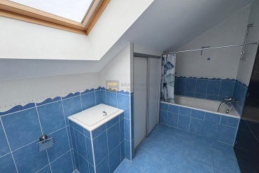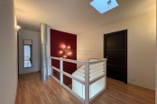 Au niveau supérieur : l’étage distribue quatre grandes chambres, chacune avec un placard, une salle de bains avec WC et vide-linge.