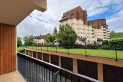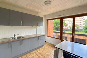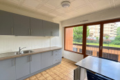 AMBILLY, Rue des Marronniers, proche douane Mon idée et du parc d'Ambilly, à louer appartement traversant 2 pièces au rez de chaussée comprenant cuisine aménagée, grand balcon au calme, nombreux rangements. Parking collectif et cave. Disponible le 09/04/26 (Réf 10226).