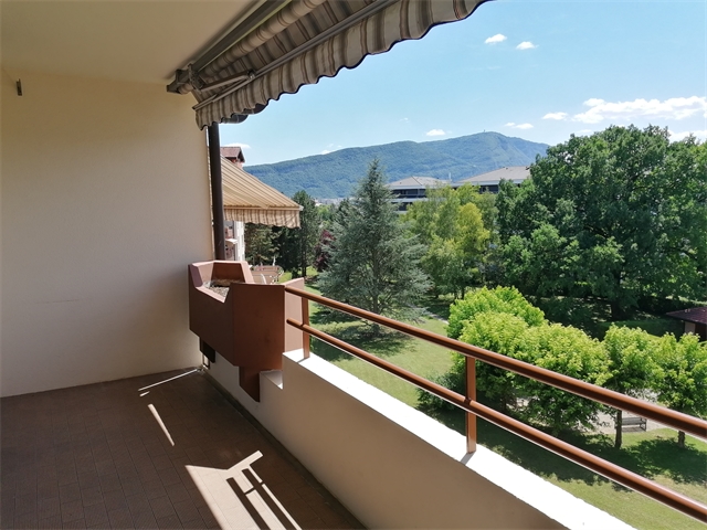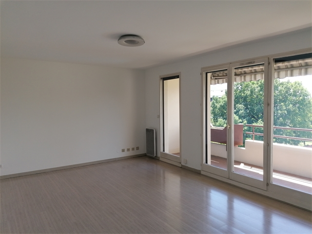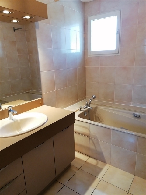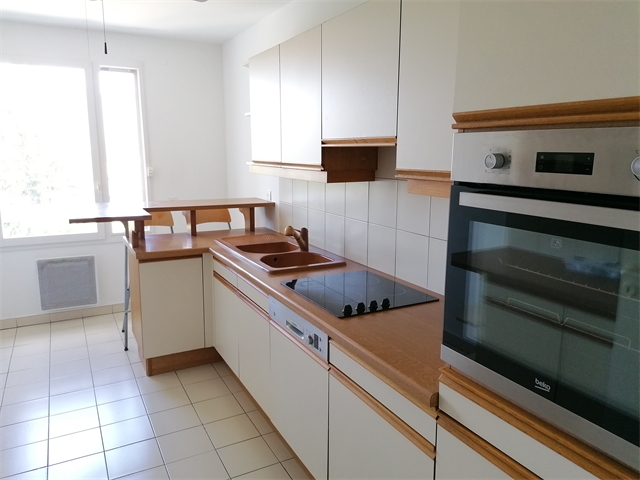 AMBILLY, rue du Bief, dans une résidence sécurisée et recherchée à proximité de la douane de Mon Idée bénéficiant d'un parc avec piscine et terrain de tennis privé, à louer appartement 3 pièces traversant en étage élevé comprenant cuisine équipée indépendante du séjour (plaques vitrocéramiques, four et lave-vaisselle), salle de bains avec rangements, WC séparé avec lave-mains, 2 chambres dont 1 avec placard. Balcon avec vue dégagée sur les espaces verts, cave et parking collectif.