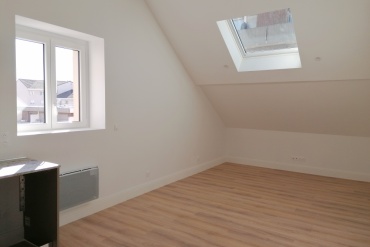 ANNEMASSE - Centre ville, appartement 2 pièces à louer au dernier étage. Comprenant une cuisine équipée ouverte sur le salon, une salle de douche avec wc, et une chambre.