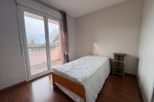 Une chambre parentale de 14.42 m² ouvert sur balcon avec grand placard et une seconde chambre avec rangements.