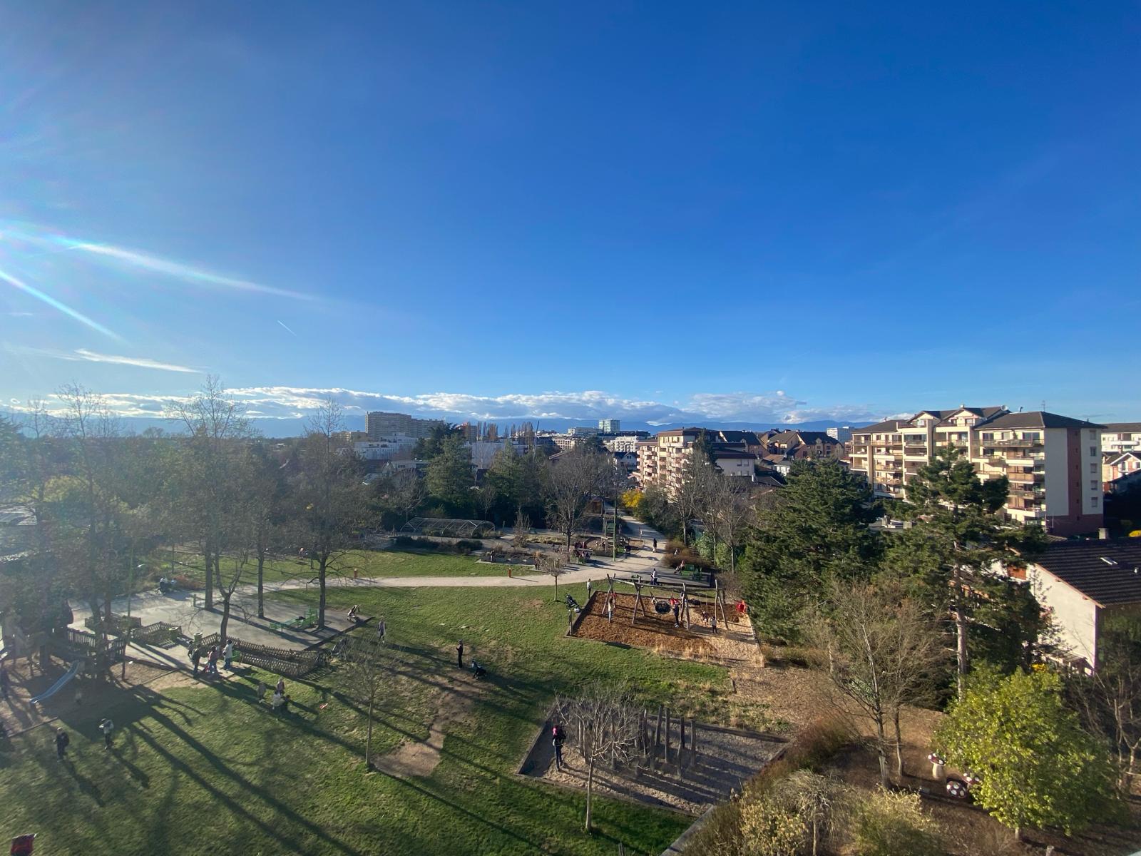 GAILLARD, Rue de la Libération, proche douane de Moëllesulaz et tramway en direction de Genève, à louer appartement 4 pièces traversant en étage élevé comprenant double séjour, cuisine équipée récente (hotte et plaques vitrocéramique), buanderie, cellier, salle de bains et WC indépendant, 3 chambres dont 1 avec grand placard. Cave et garage. 2 balcons dont 1 avec vue sur un jardin. Disponible le 25/03/26 (Ref 16960)