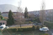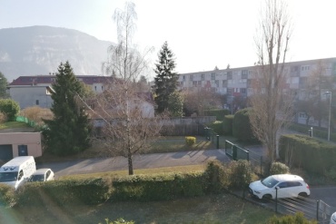 GAILLARD, Allée des Coins, dans une résidence sécurisée à deux pas de la frontière, au 2e et dernier étage sans ascenseur, à louer grand appartement 2 pièces comprenant entrée avec placard, cuisine équipée et semi-ouverte sur le séjour, salle de bains et grand WC avec rangement séparé, chambre avec placard. Balcon en exposition plein sud, cave et place de parking privative.