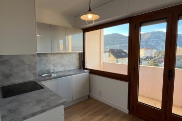 GAILLARD, Rue de Moellesulaz, Appartement 1 pièce entièrement rénové à louer, proche des petits commerces, à deux pas du tram et de la douane de Moillesulaz. L'appartement se compose d'une entrée avec placard, une cuisine équipée séparée, une salle de douche avec WC, une pièce principale permettant un aménagement "espace salon" et "espace chambre" donnant sur un grand balcon exposé plein sud et sans vis à vis.