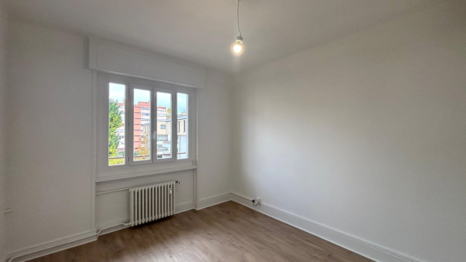 GAILLARD, rue de la Libération, dans une résidence à proximité de la douane de Moellesulaz et du tramway pour Genève, à louer appartement 2 pièces traversant au 1e étage comprenant grande entrée, séjour avec placard, cuisine aménagée indépendante, salle de bains avec WC et grande chambre avec placard. Les peintures et le parquet viennent d'être rénovés. Un balcon et une cave.