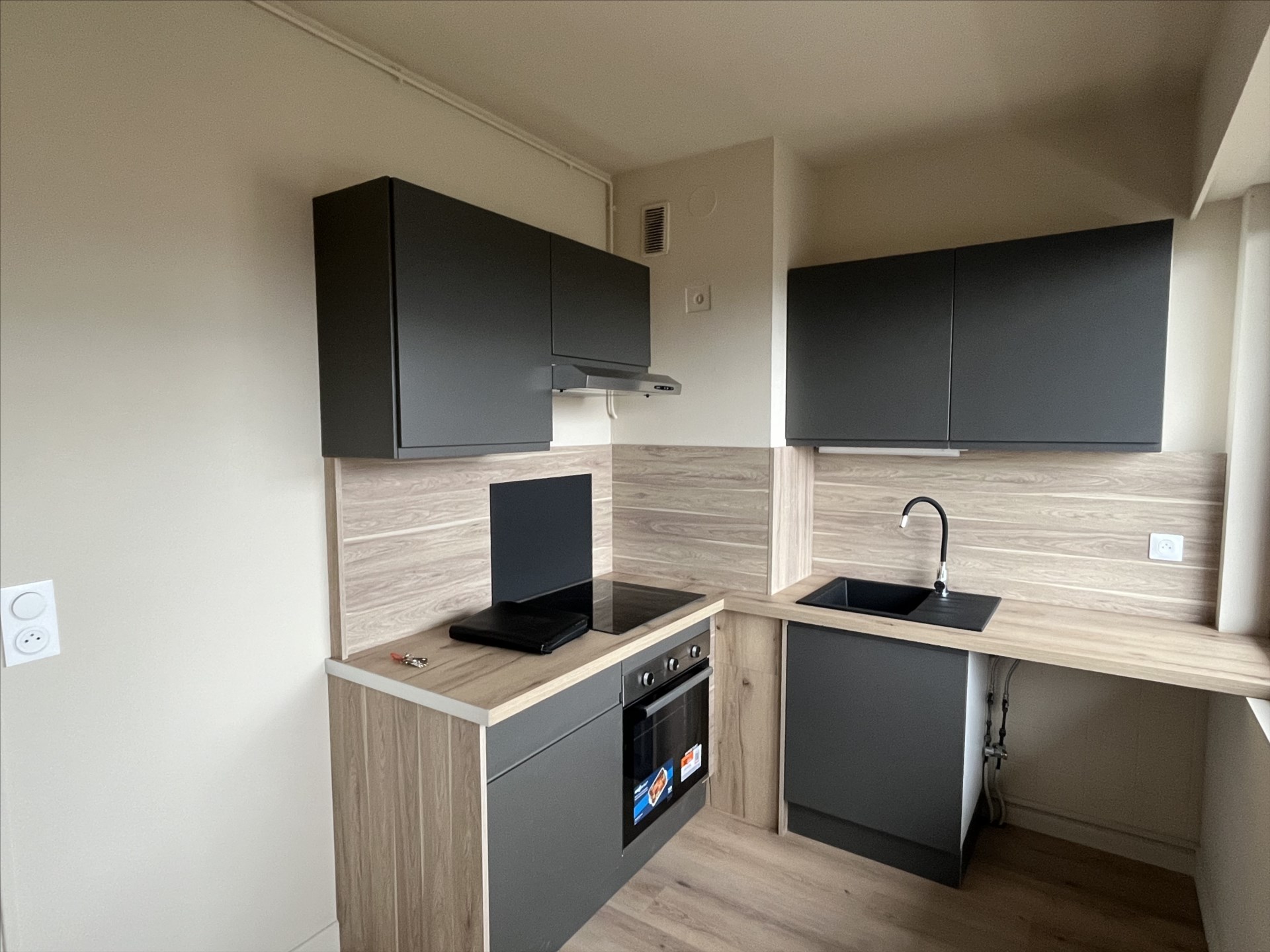 GAILLARD, Rue de Moellesulaz, Appartement 1 pièce entièrement rénové à louer, proche des petits commerces, à deux pas du tram et de la douane de Moillesulaz. L'appartement se compose d'une entrée avec placard, une cuisine équipée séparée, une salle de bains avec WC, une pièce principale permettant un aménagement "espace salon" et "espace chambre" donnant sur un grand balcon exposé plein sud et sans vis à vis.