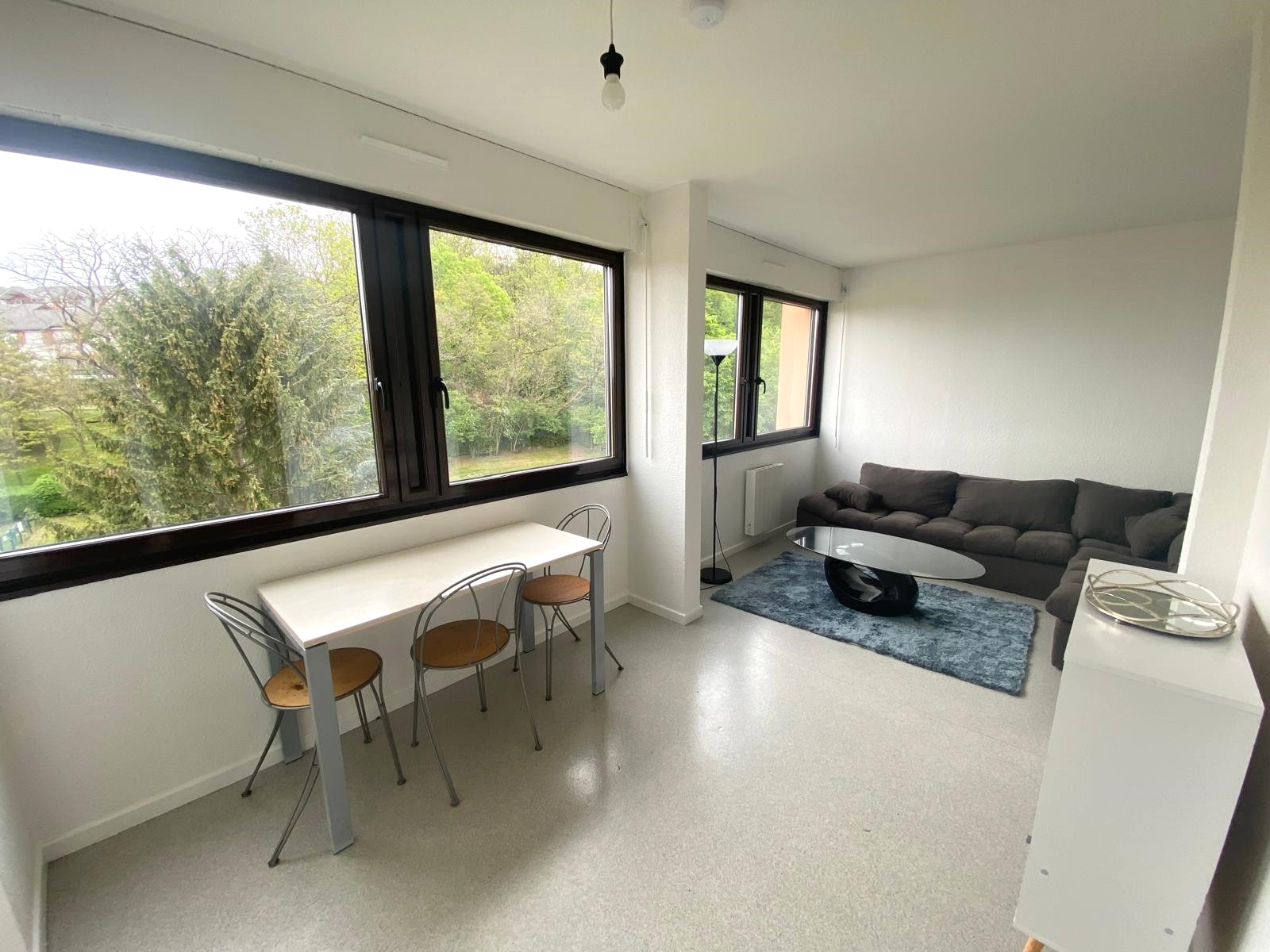 Proche des lignes de transports, à louer appartement T1 meublé dans une résidence de bon standing et sécurisée, vue dégagée sur le jardin de la résidence, Kitchenette équipée, salle de bain avec WC, parking collectif.