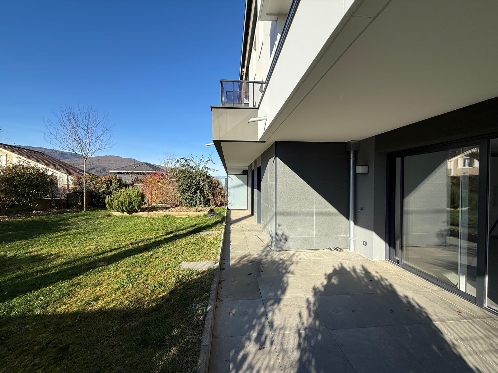 VETRAZ-MONTHOUX, à louer appartement 3 pièces de 66 m2 en Rez de jardin, dans une copropriété de 2021, à proximité de l'école et des petits commerces de proximité.