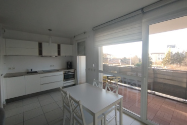 Composé d'une belle pièce de vie lumineuse avec cuisine entièrement équipée donnant sur un balcon de plus de 10m² exposé Ouest, d'une chambre avec rangement intégré et d'une salle de bain.