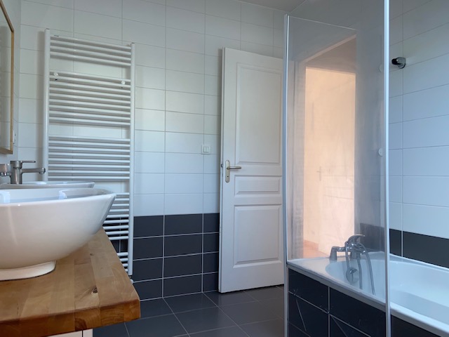 A l'étage, 2 chambres, une salle de bains, un second wc et un espace bureau sur le palier.