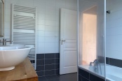 A l'étage, 2 chambres, une salle de bains, un second wc et un espace bureau sur le palier.
