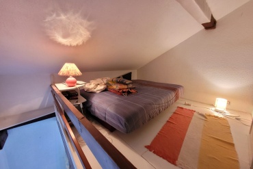 Situé au deuxième étage, l’appartement se compose d’un hall d’entrée pouvant accueillir des couchages superposés, d’une pièce de vie avec kitchenette, et cela ouvrant sur un balcon, d’une salle de bains, ainsi que d’une chambre à l'étage disposant de plusieurs espaces de rangement.