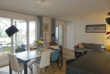 AMBILLY - Emplacement idéal, situé à deux pas des douanes de Pierre à Bochet et Mon Idée, au premier étage d'un immeuble fraîchement sorti de terre et de bon standing, appartement T4 de 93,52 m2 composé d'une entrée menant au salon/séjour avec accès à une spacieuse terrasse de 33,57m2 en double exposition Sud et Est, une cuisine équipée ouverte, trois chambres dont une suite parentale avec une salle de douche et w.c, une salle de bains et WC séparé.