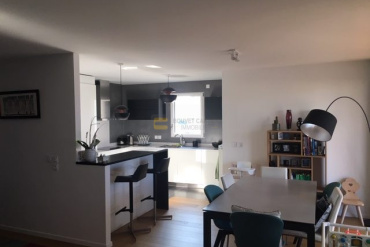 AMBILLY - Emplacement idéal, situé à deux pas des douanes de Pierre à Bochet et Mon Idée, au premier étage d'un immeuble fraîchement sorti de terre et de bon standing, appartement T4 de 93,52 m2 composé d'une entrée menant au salon/séjour avec accès à une spacieuse terrasse de 33,57m2 en double exposition Sud et Est, une cuisine équipée ouverte, trois chambres dont une suite parentale avec une salle de douche et w.c, une salle de bains et WC séparé.
