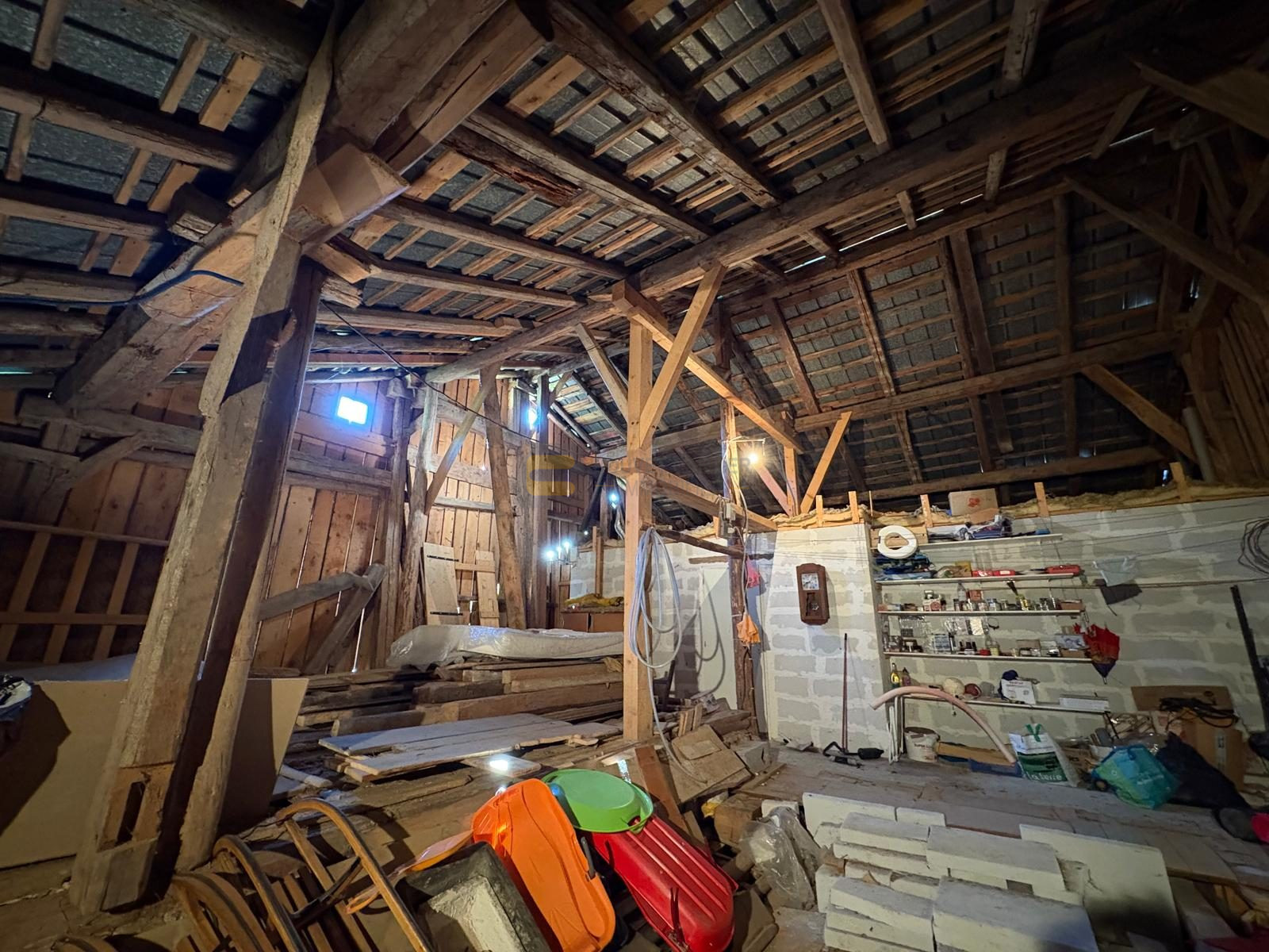 Ce bien dispose également d'un vaste plateau de 80,16 m² avec une belle hauteur sous plafond, cet espace brut offre un très fort potentiel d’aménagement : extension, atelier d’artiste, loft, gîte, etc. La couverture toiture est en tôle et la charpente a été reprise et consolidée..
