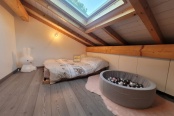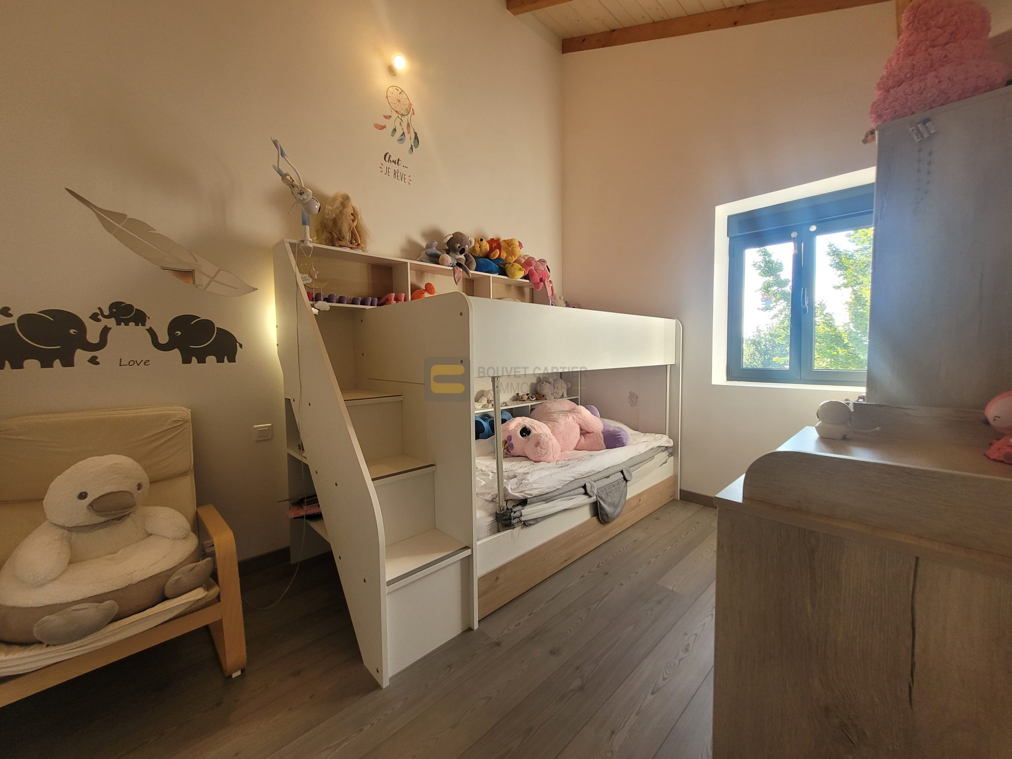 Le deuxième étage propose un WC indépendant, une salle d’eau avec douche, ainsi que deux chambres dont une mansardée, parfaites pour des enfants ou un espace bureau.