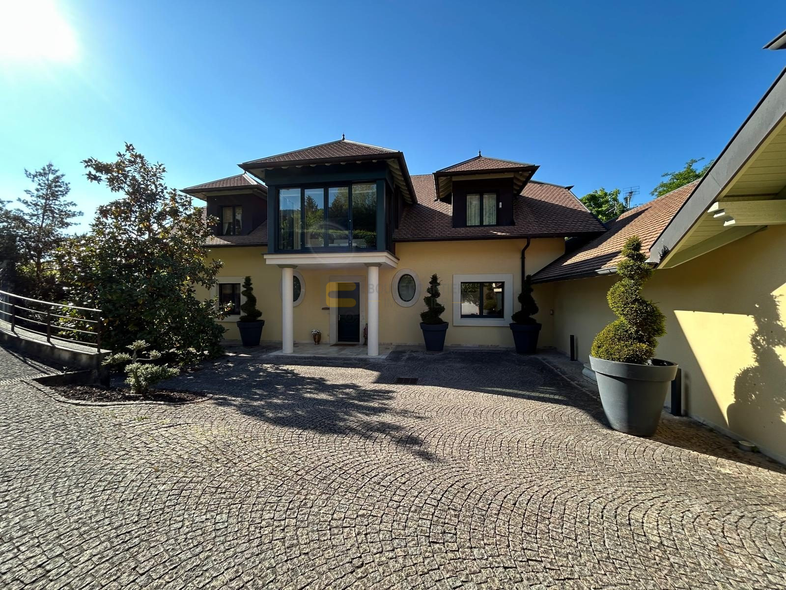 COLLONGES-SOUS-SALEVE ! Somptueuse villa de 477 m² édifiée sur une parcelle de 2181 m².Située dans un environnement résidentiel prisé, à proximité immédiate de Genève, cette demeure d’architecte de 477 m² offre un cadre de vie rare, alliant élégance intemporelle et prestations haut de gamme.Édifiée sur trois niveaux desservis par un ascenseur intérieur, cette propriété à la construction en béton armé bénéficie d’une conception raffinée et de matériaux nobles.Au rez-de-chaussée : un hall d’entrée majestueux avec hauteur sous plafond de 3 m, un escalier en pierre taillée et ferronnerie d’art, ainsi qu’une bibliothèque au parquet Versailles, donnent le ton. Le vaste salon / séjour s’ouvre sur une terrasse en travertin de 160 m². Une salle à manger dotée d’un vaisselier du XVIIIe siècle, une cuisine de standing : plan de travail en marbre d’Afrique du Sud et cave à vin climatisée, un atelier, une buanderie, un office avec point d’eau ainsi qu'un accès au garage complètent ce niveau.Au niveau supérieur : l’étage distribue trois grandes chambres, dont une suite parentale avec salle d’eau et dressing avec vue directe sur le Jet d’eau de Genève apportant un confort unique. Une seconde chambre avec salle de bains ainsi qu'une troisième avec salle d’eau séparée. Un bureau, une galerie lumineuse avec une vue imprenable sur le Salève prolongée par une bibliothèque en poirier.Au niveau inférieur : Un salon de réception spacieux pouvant être aménagé en salle de sport avec cuisine équipée et toilettes séparées prolonge harmonieusement les espaces de vie vers le jardin paysagé et sans vis-à-vis. Le tout dans une atmosphère zen, avec fontaine, plantations rares, et escaliers en pierre de chaque côté de la terrasse.Dépendances et prestations•Garage de 38 m² avec grenier, tuiles de Bardonnex•Domotique complète, système audio intégré, volets roulants électriques•Double vitrage anti-effraction (aluminium extérieur / bois intérieur), portes blindées•Chauffage au sol réversible à l’étage, climatisation, pompe à chaleur, panneaux solaires, adoucisseur d’eau•Cour pavée chauffée, système d’alarmeDPE : CPrix : 2 300 000€Honoraires charge vendeurConsultez nos tarifs sur www.bouvet-cartier.com / HonorairesLes informations sur les risques auxquels ce bien est exposé sont disponibles sur le site Géorisques : https://www.georisques.gouv.fr