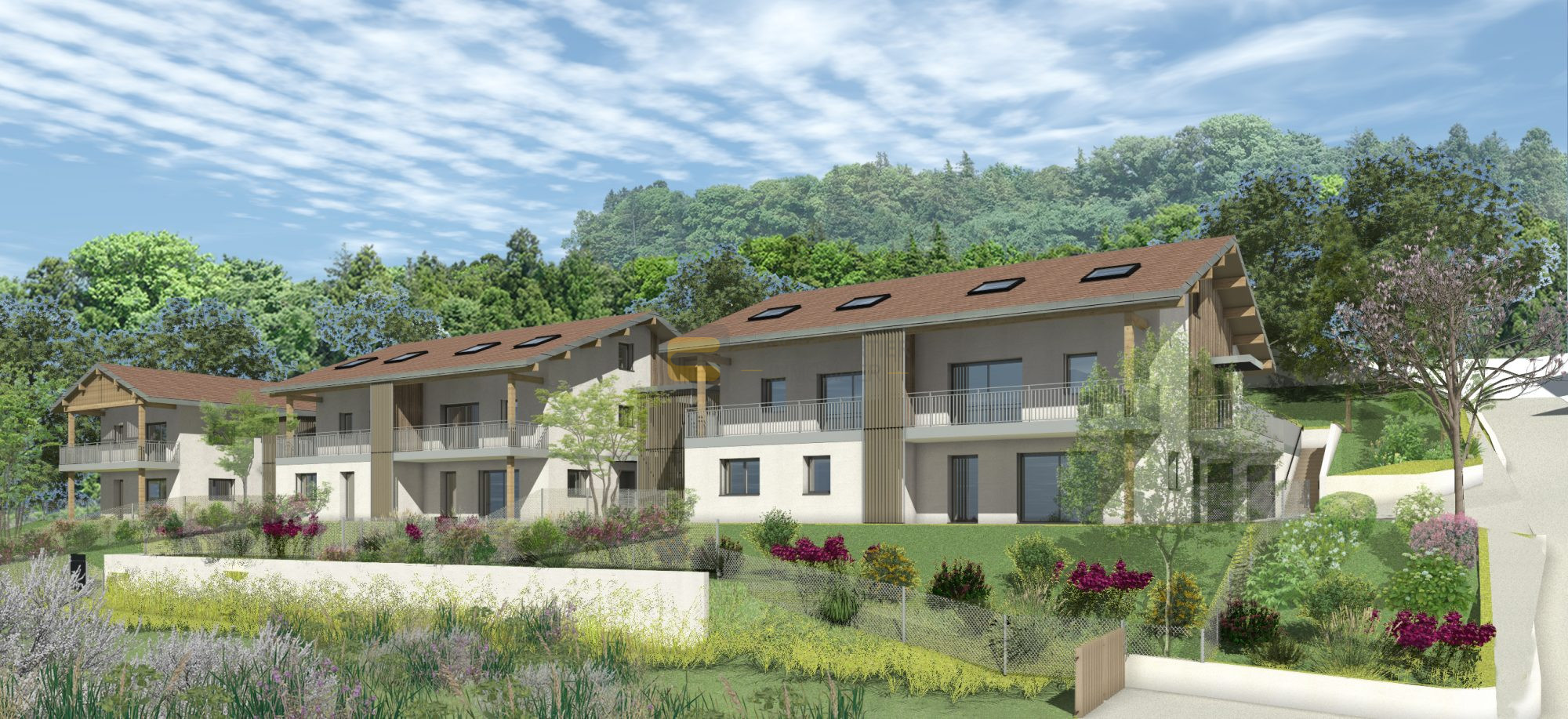 Tous les logements disposent d'un espace extérieur - balcon ou terrasse avec jardin privatif - offrant un magnifique panorama sur le bassin Annemassien.