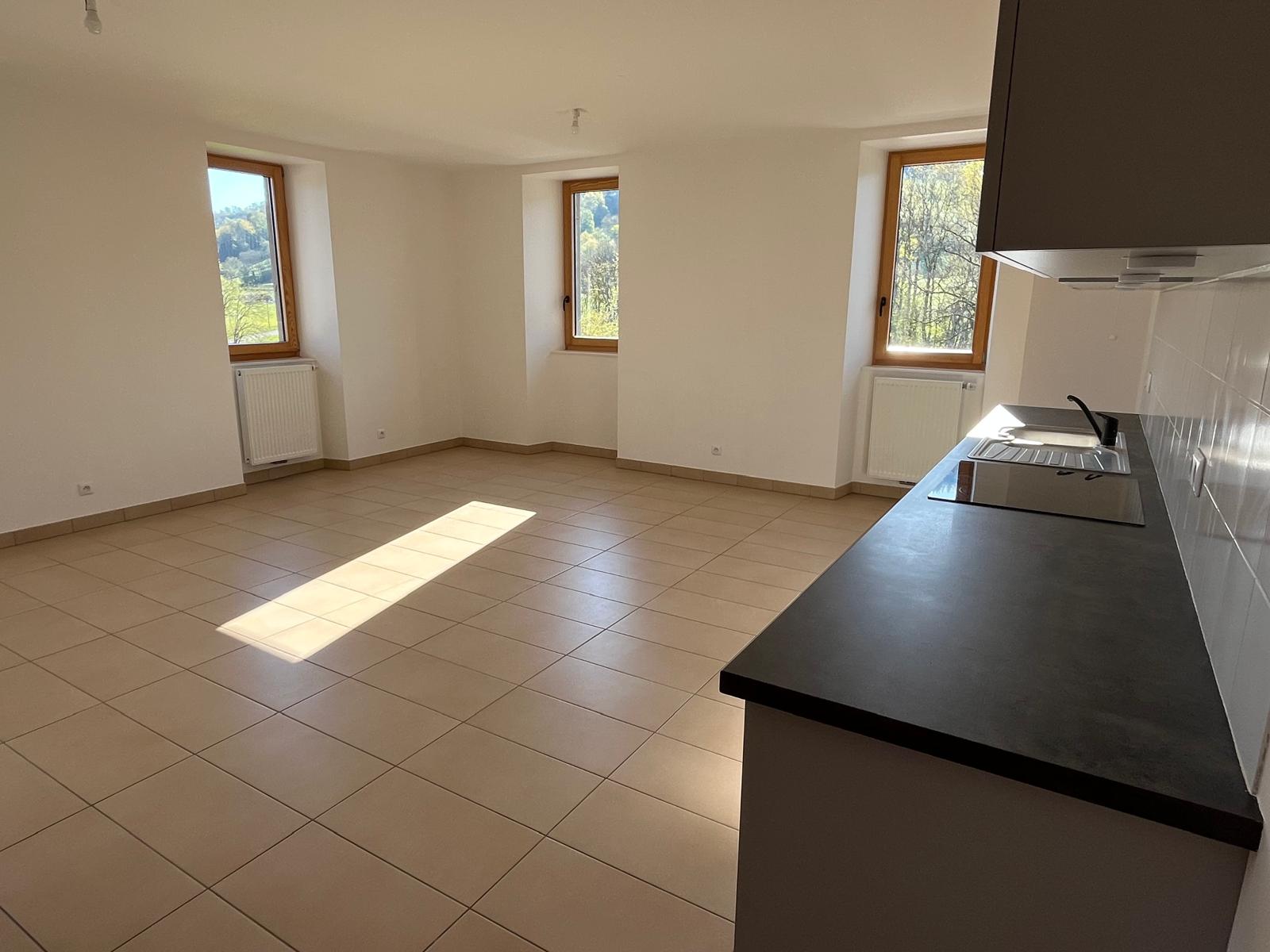 SAINT ANDRE DE BOËGE - En plein centre de ce petit village de la Vallée Verte, à moins de 5 minutes en voiture de Boëge, Appartement 3 pièces à louer situé au 1er étage. L'appartement se compose d'une entrée avec placard, un séjour, très lumineux, ouvert sur une cuisine équipée (four, plaque, hotte), deux chambres avec placards, une salle de douche et un WC séparé.