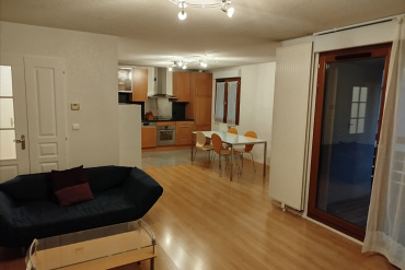 AMBILLY - Situé à 5 min à pieds de la douane de Mon Idée et à 10 min à pieds de l'arrêt de tramway pour Genève, A louer appartement 3 pièces meublé en duplex d'environ 90m2 au sol. L'appartement se compose, au premier niveau d'un séjour/cuisine très lumineux, donnant sur le balcon.