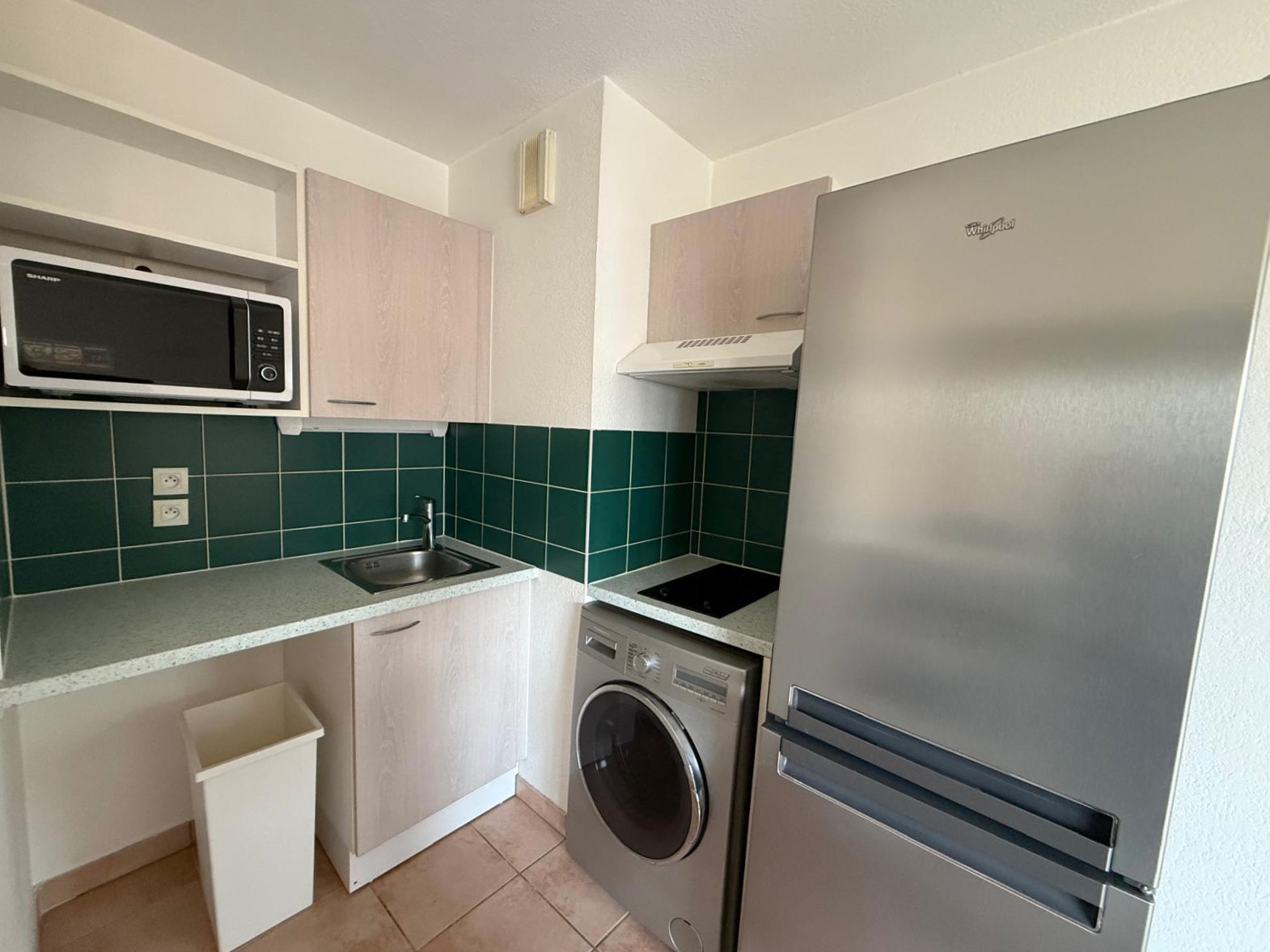 L'appartement se compose d'un salon cuisine, un dégagement donnant sur la salle de bain la chambre et les WC séparés.