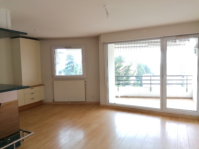 ANNEMASSE, rue du Joroux, à proximité des transports, du centre-ville et des écoles, à louer appartement 3 pièces traversant en étage élevé comprenant cuisine équipée semi-ouverte sur le séjour (hotte, plaques induction, réfrigérateur-congélateur, four traditionnel et four vapeur, lave-vaisselle), salle de bains et WC séparés, 2 chambres dont 1 avec placards. Nombreux rangements. Balcon en exposition ouest et lumineux, cave et garage en sous-sol.