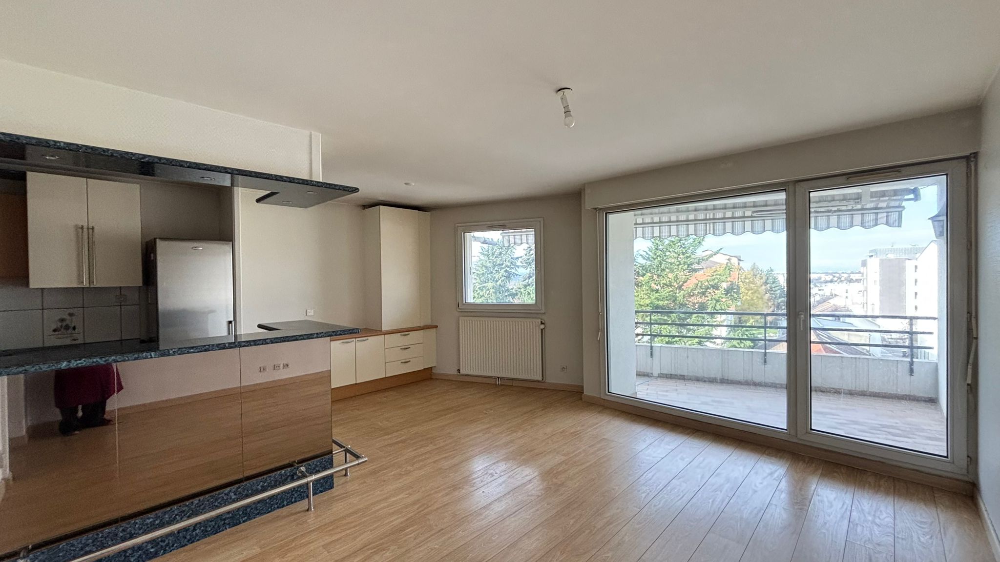 ANNEMASSE, rue du Joroux, à proximité des transports, du centre-ville et des écoles, à louer appartement 3 pièces traversant en étage élevé comprenant cuisine équipée semi-ouverte sur le séjour (hotte, plaques induction, réfrigérateur-congélateur, four traditionnel et four vapeur, lave-vaisselle), salle de bains et WC séparés, 2 chambres dont 1 avec placards. Nombreux rangements. Balcon en exposition ouest et lumineux, cave et garage en sous-sol.