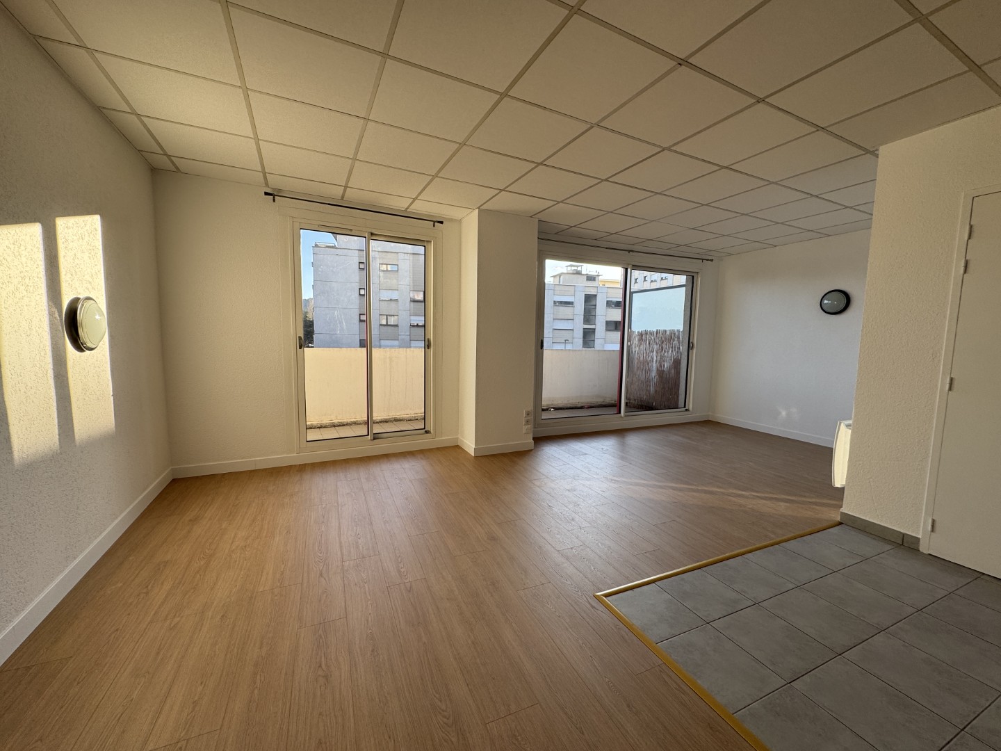 ANNEMASSE , Rue Marc Courriard, à louer, appartement 1 pièce au 1er étage. Grande pièce principale avec lreage balcon exposé sud-est vue Salève et sans vis à vis. kitchenette, salle de bains et WC.