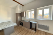 ANNEMASSE - Centre ville proche rond point de l'étoile, appartement 2 pièces à louer au dernier étage sans ascenseur. Comprenant une cuisine équipée ouverte sur le salon, une salle de douche avec wc, et une chambre.