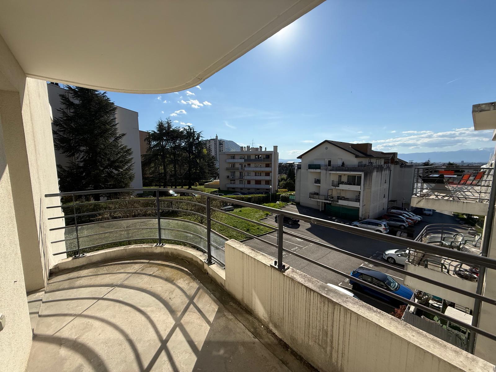 VETRAZ MONTHOUX, impasse du Col de la Faucille, dans une résidence récente et sécurisée, appartement de 2 pièces à louer avec cuisine équipée ouverte sur un grand séjour, balcon exposé plein ouest avec vue sur le jet d'eau de Genève, 2 places de parkings dont 1 en sous sol et une cave, disponible le 02/04/2026