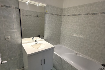 VILLE LA GRAND, Place du Porte Bonheur, à louer dans immeuble récent, appartement 2 pièces de 55 m2, 3° étage avec grand balcon exposé plein sud, vue dégagée, chauffage individuel gaz, garage, disponible le 16/12/2025 (Ref 9350)