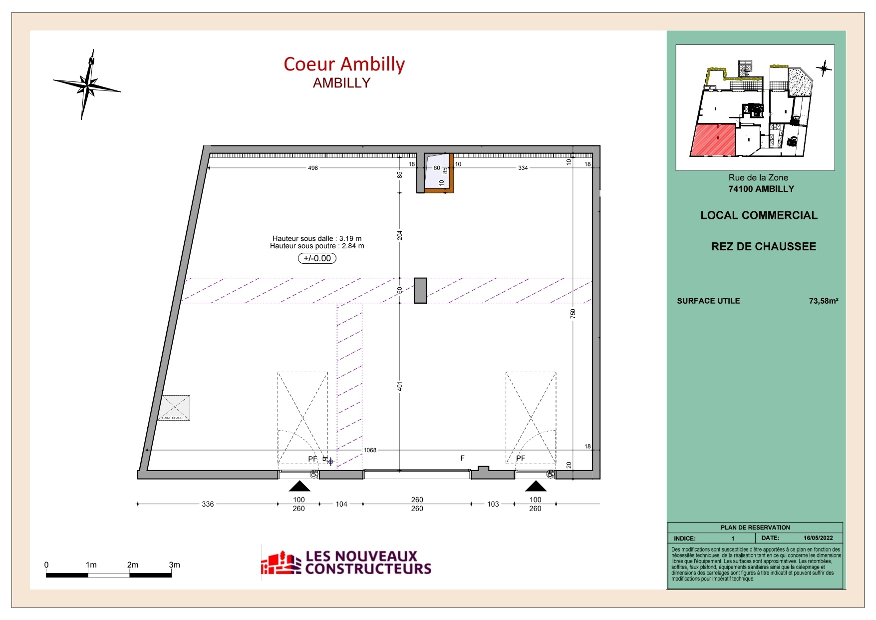 AMBILLY, Situé au 18 Rue de la Zone dans une copropriété neuve, local commercial de 75m2 à louer.