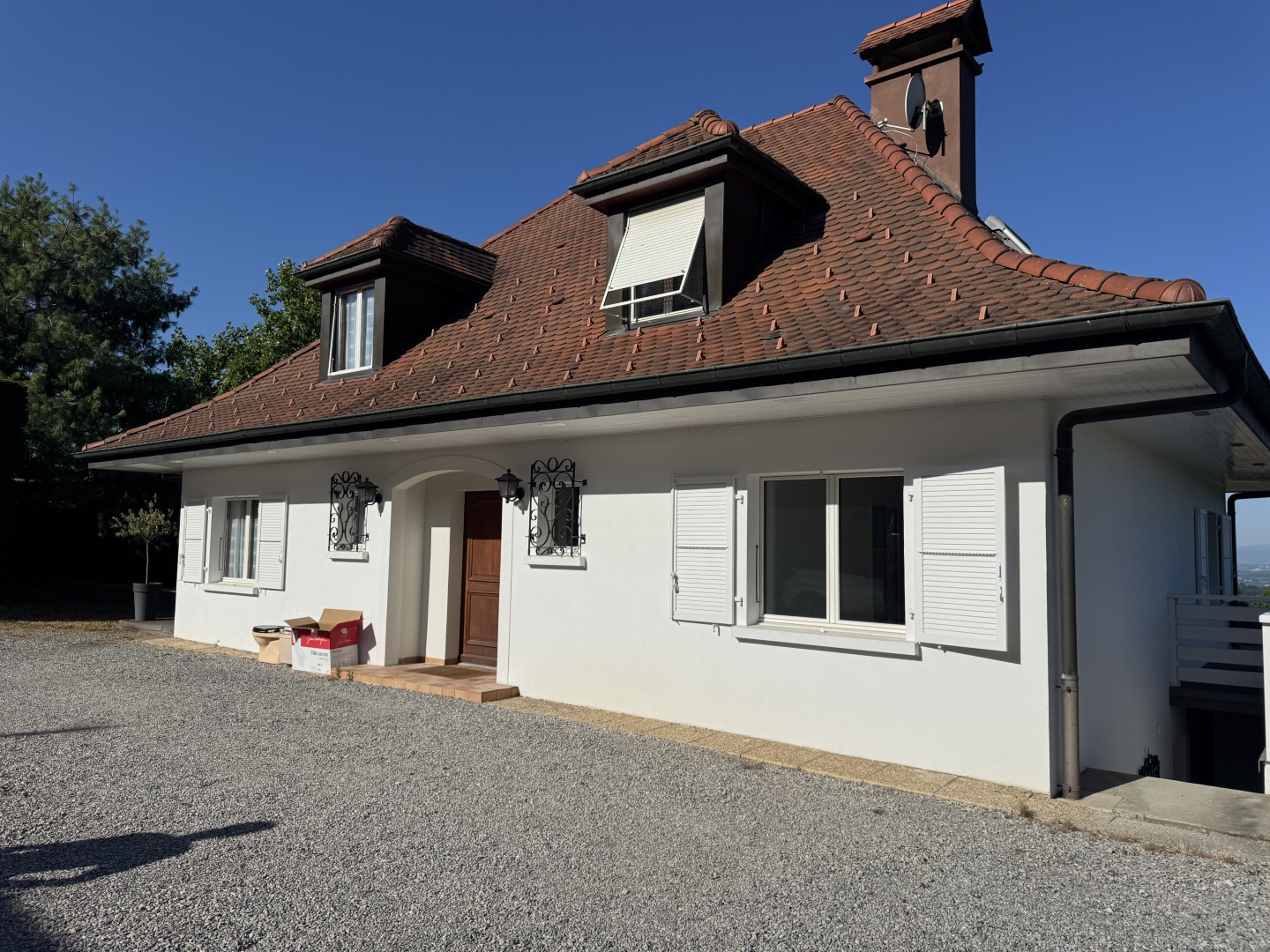 Au rez, grand salon séjour/séjour lumineux ouvrant sur une terrasse en exposition sud-ouest avec vue sur la Salève. Cuisine équipée séparée. Une chambre et une lingerie