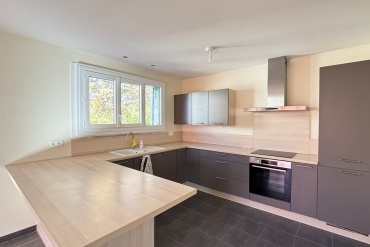 * Grande pièce de vie lumineuse avec cuisine équipée, exposition sud-ouest, vue imprenable sur le Salève