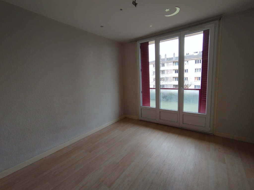 ANNEMASSE, route de Livron, au 1er étage d'une petite copropriété à proximité du centre commercial Le Praz du Léman et au pied des lignes de bus, à louer appartement trois pièces à louer, comprenant une entrée avec placard, un séjour avec rangements et balcon, une cuisine équipée séparée du séjour (hotte, plaques au gaz de ville, four) avec véranda, salle de bain et WC separés, 2 chambres dont 1 avec accès au 2e balcon.